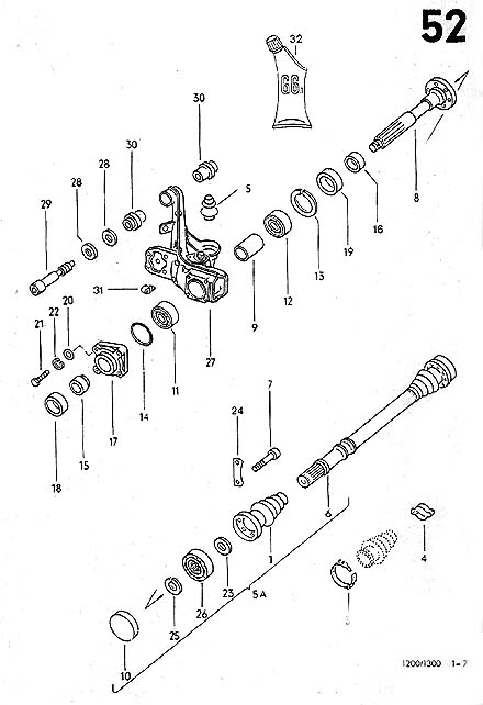 Nr4 skal sidde i låget, men der skal først være en metal skive som sidder løst. nr3 skal sidde umidelbart efter lejet efterfulgt af Nr5 og en kraftig ring med en affaset kant som skal vende indad.