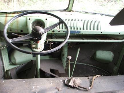 Intereør er ganske bra i fører kabin da alle vinduer er hele og dører/vinduer har vert lukket Har stått utendørs i over 30 år