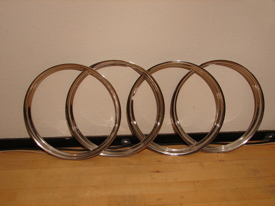 4 stk. fælgringe med vulst til alle standard 15 tommer fælge.lidt brugspatina men stadig flotte.