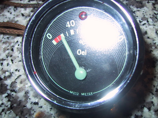 Fandt dette MotoMeter olietemperatur-ur som passer lige i en vw. Det virker som det skal, og er i god stand. Der er tilmed en lille indikator pære midt i det, som man evt. kan bruge som olietryks pære ?!. bagpå står der stemplet det er fra 1954.