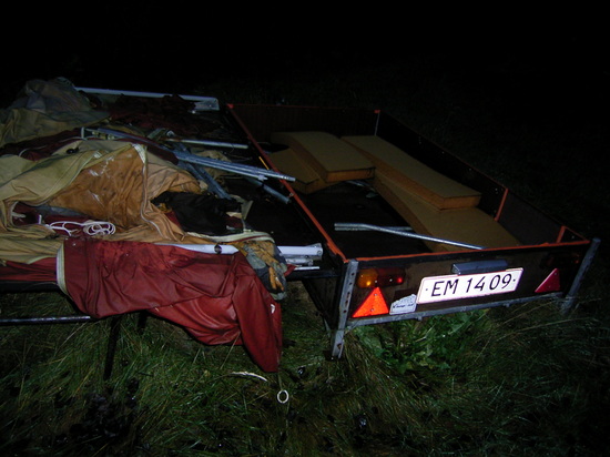 jeg har den her , den er købt til at skulle bygges om til en trailer , men det får jeg aldrig gjort , så er der en der kan bruge den , tror ikke teltet kan mere vis det kan renses så måske . . . . .