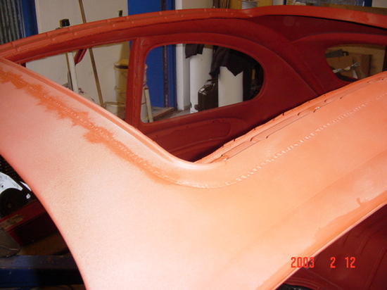 Har lavet to biler hvor samlingen er lagt i rundingen til hullet,og så fuldsvejst det, men kun 1 cm afgangen og kølet ned med trykluft ...soltaget var hængt op fra undersiden med ca 1 cm overlap... det ligner fabriksmonteret bagefter og ingen spartel..
