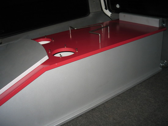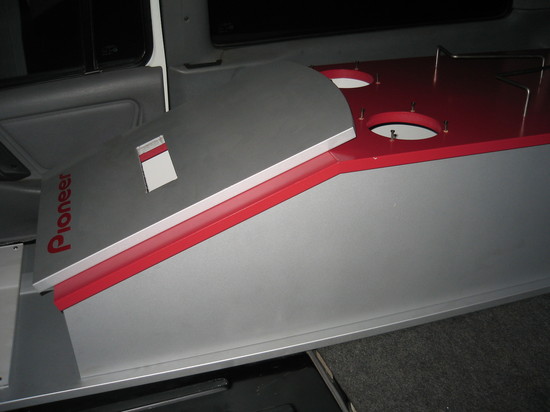 2 meter høj, ca 50x40cm bredde dybde. Sølv / Rød med kraftig strømforsygning og antenne - plads til 2 højtalere (kan ud bygges der) og en radio/cd afspiller - perfekt til garagen / værkstedet