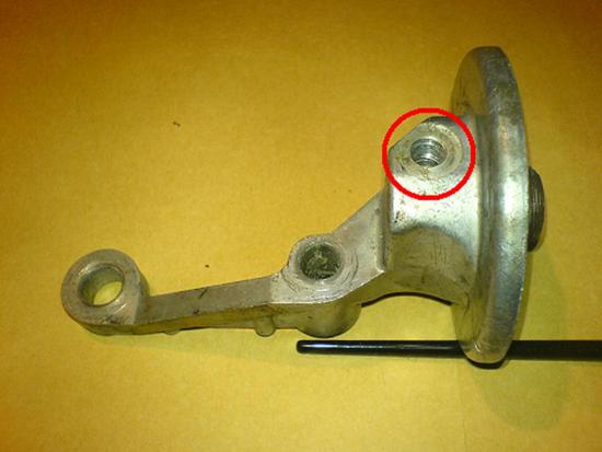 Jeg ved at den skal monteres på siden af generatorstanden med banjobolte og at filteret skal stritte ud mellem remmen (ved også at det viste filter ikke er det rigtige), men hvor skal jeg tilslutte hullet med den røde ring?