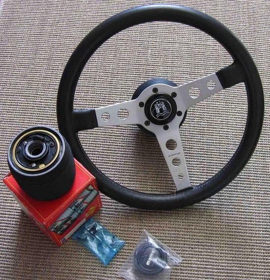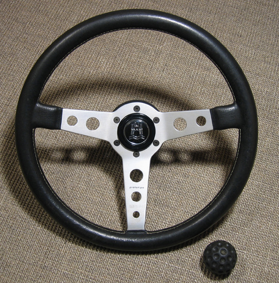 Et styk 14" Momo Prototipo læderrat fra dengang mor var dreng og servostyring en by i Texas. Standen er overordenlig fin og navet passer VW m.v. fra før 1988 (den tynde ratstamme) dytteriet er med Wolfsburg logo. Jeg har også en golfkugle liggende et eller andet sted