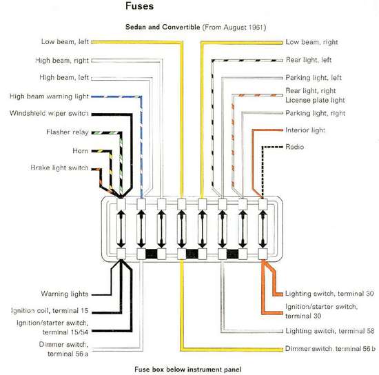 jeg er igang med at sætte min blå buggy isand. og det gamle ledningsnet ser ud af helves til. samt der er en gammel sikringsholder med de gamle porcelænsikringer. jeg fik den ide at jeg vil udskifte den med en ny sikringsholder til de flade sikringer. og da jeg gik i gang med at kikke på det opdagede jeg at det var noget være markværk som var der. og at der var flere ledninger som gik fra den ene sikring til den anden osv. plus der var nogle af ledningerne som var smeldet en smule. så nu vil jeg have lavet et nyt med jeg har ikke nogen lednings diagram som jeg kan kikke efter. så vidt jeg man se så er der to relær og en sikringsholder og en bunke masse ledninger.