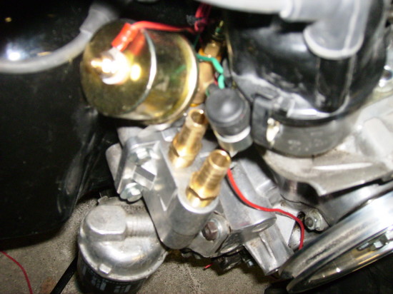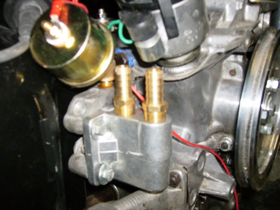 Slangen vil ramme lige op i olitryk måleren eller strømfordeleren.