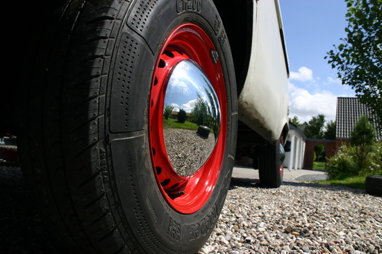 der er kleber varevognsdæk på og de er lige afbalanceret