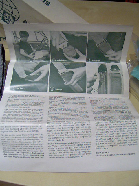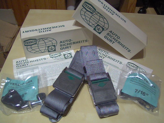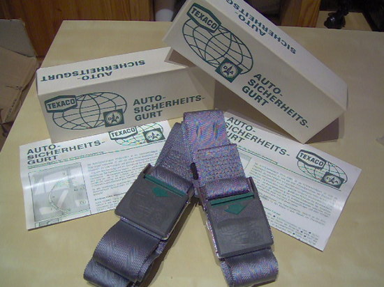 A pair of NOS "AUTOFLUG TEXACO DEA SEAT BELTS", NOS, in original Box. Perfect condition, ready to mount with all parts.
