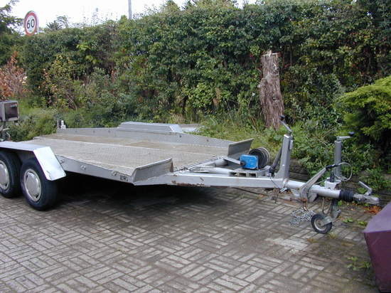 Fin autotrailer med tiplad og spil årgang 1990.