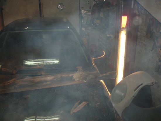 en masse bobbelskærme og værktøj neden under,så de blev jo lige revet med på vejen. heldigvis blev resten af taget hængene.