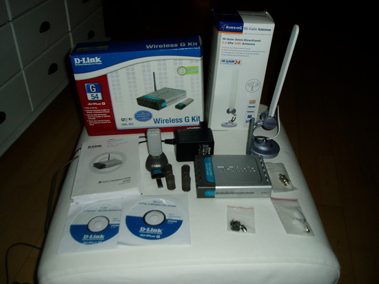 Alt på billederne er selvfølgelig med og har kvittering på D-link sættet (købt den 21-07-06 for 599 kr). Har dog ikke kvittering på Hi-gain antennen (pris 300 kr).