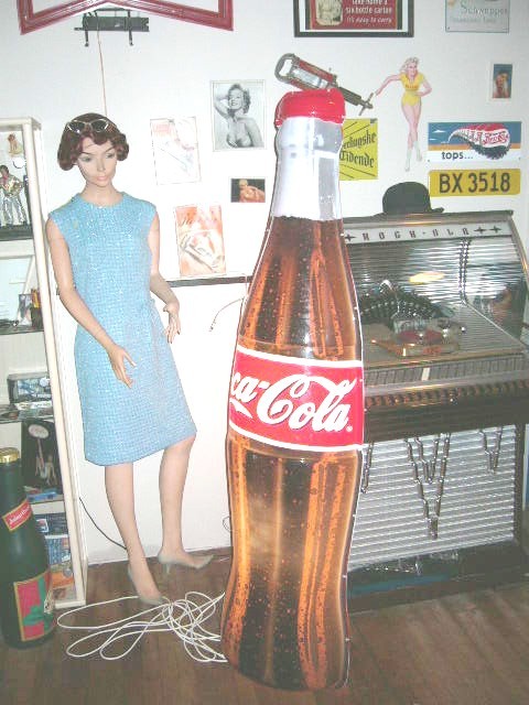 STOOR COCA COLA FLASKE SKILT, dobbeltsiddet , 2 neonrør, H: 180 cm, m. ophæng, passer også perfekt som hyggelampe i stuen