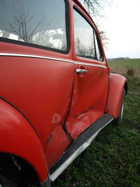 Den er blevet påkørt for omtrent to 2 1/2 år siden, af en traktor!