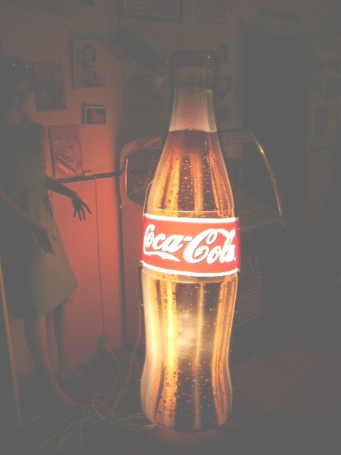 COCA COLA LYSSKILT, Stor dobbeltsiddet COCA COLA lysskilt, virker FINT, L: 180 cm med ophængskroge SE FOTO
