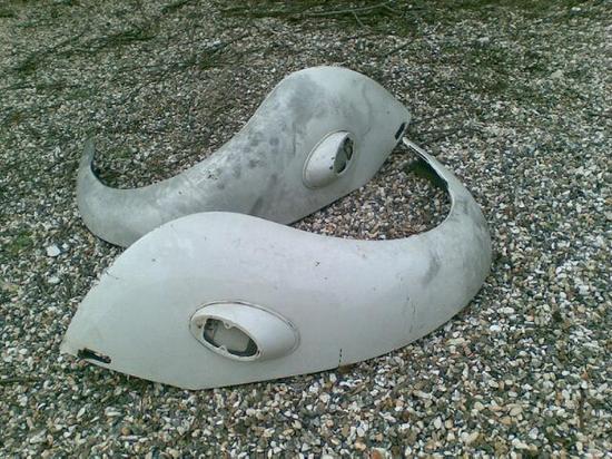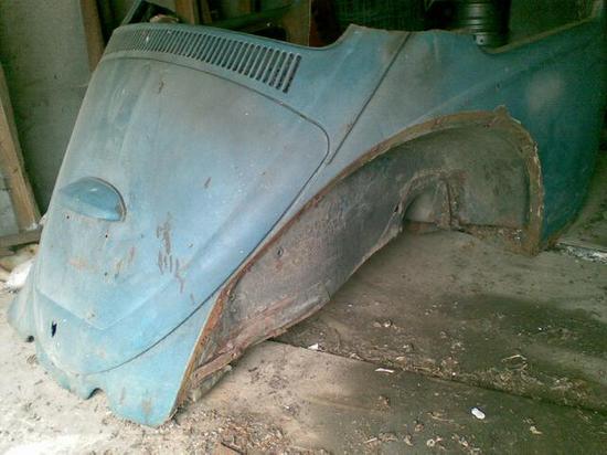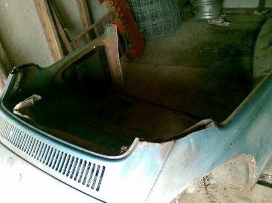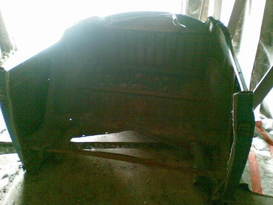 Afskåret bagende med bagskærme og motorhjælm uden bund.
