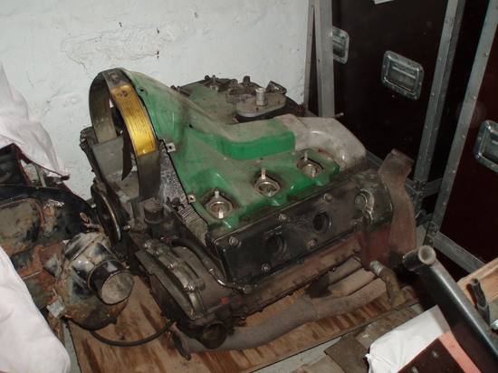 Motoren er lettere defekt. Et par af støtteboltene har trukket sig lidt, et godt vinterprojekt, da motoren skal skilles ad og helicoil renoveres. Motoren har 175hk, km-tal ukendt. Motoren er komplet.