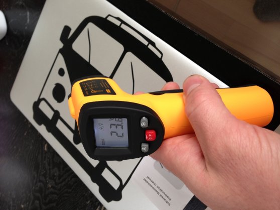 Den er super til at aflæse temperatur overalt på motor osv. Hold knappen inde og den aflæser temperaturen "live" - meget effektivt og enkelt. Bare skyd på emnet, og du får temperaturen med det samme. Der er lys i displayet.