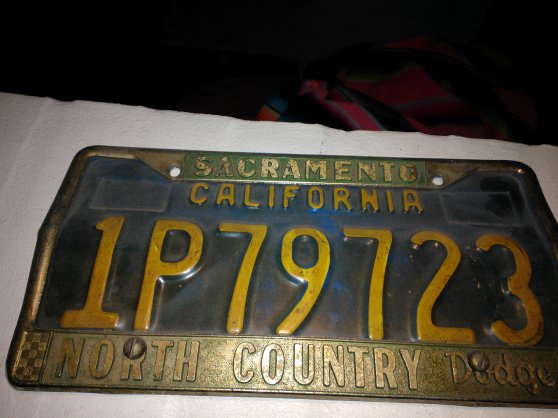 Cal blue plate med Dodge ramme 250,-