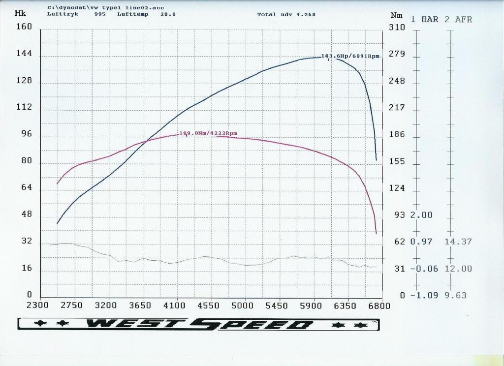 1955 Buggy motor, Web 110/163 knast på 105 LC, stage 1 by me 043 toppe, 40/35 mm ventiler, 9,5 kompression, modificerede 40 mm Idf 70, 1 5/8 JP rustfri sidewinder. Masser af bundmoment, men stopper tidligt: http://bugfans.de/forum/resources/image/37184